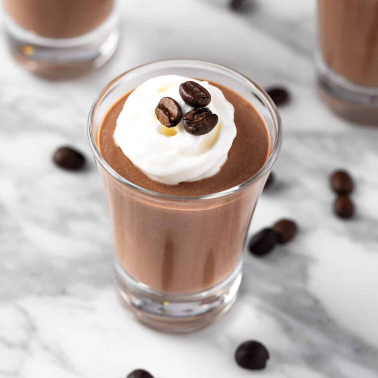 Christmas Chocolate Kahlua & Baileys Pudding Shots – Creamy, boozy pudding shots made with Baileys, Kahlua, and chocolate pudding, topped with festive sprinkles. A fun and decadent holiday party treat!