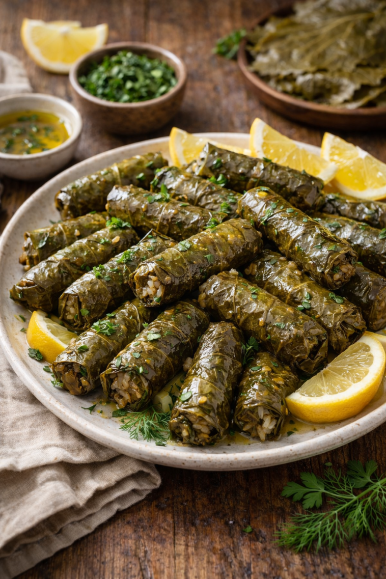 Traditionally simmered until tender, stuffed grape leaves are ideal as an appetizer, mezze platter addition, or light meal served warm or chilled.