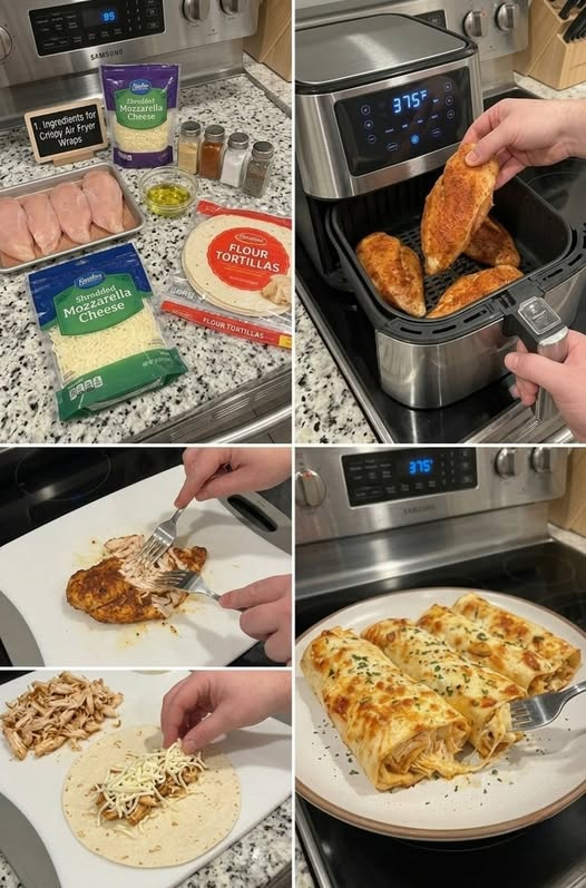 Crispy Air Fryer Chicken & Mozzarella Wraps are golden on the outside, cheesy on the inside, and packed with juicy, seasoned chicken.